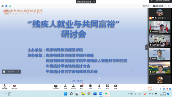 近日,“残疾人就业与共同富裕研讨会”在南京特殊教育师范学院举行,来自国家统计局、中央党校、江苏省残疾人发展研究会、南京大学、兰州大学、陕西师范大学、首都师范大学、北京联合大学、南京邮电大学、长春大学、一加一残障公益集团等机构和高校的研究人员,围绕“残疾人就业与共同富裕”这一主题,展开线上、线下研讨,为残疾人就业发展献策献计。