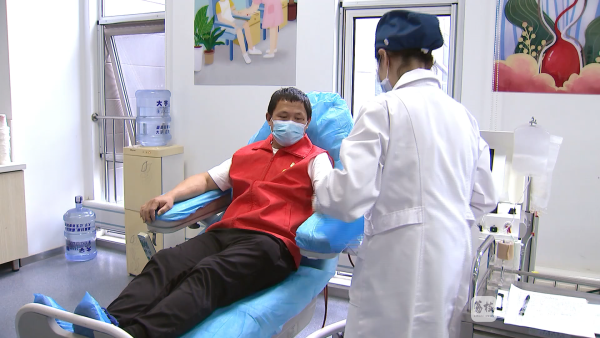 南通市崇川区的蔡震国在献血者日到来之际,又一次来到血站,准备捐献一个治疗量的血小板。