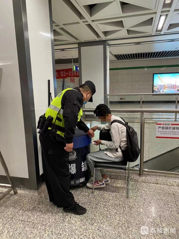 6月7日9时10分许,一年轻男子一直停留在诚信大道站的进站通道内,先是双手撑膝勉强站立了一会,没过两三分钟就站不住了,抱着膝盖蹲了下来。不远处的执勤警力发现男子异常后,随即上前询问。然而男子无力回答,面色苍白,辅警连忙将其搀扶到一旁的座椅上休息,站务也随即倒来温水给其缓解。