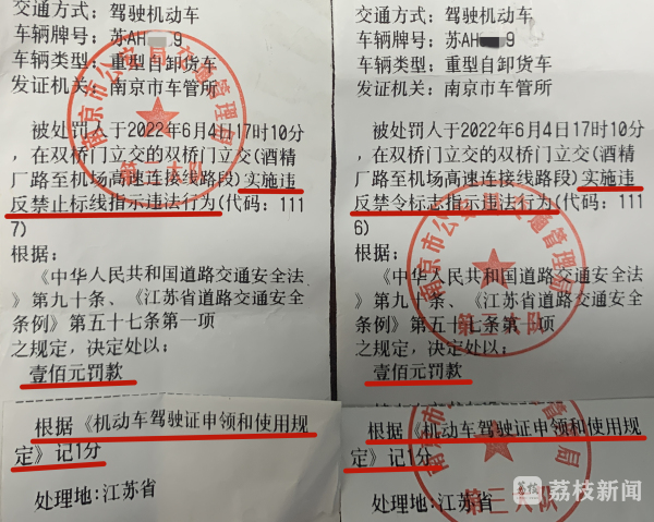 6月10号早晨6点半左右,南京交警接到群众反映称,应天大街高架上有黄牌大型工程车驶过。机动大队立刻派遣警力,通过调取沿途监控、摸排比对车辆行驶轨迹,当天上午就在雨花台区一处工地找到了相关驾驶员和车辆。驾驶员称:“因为对周边不熟悉,只能跟着导航走,才走到了高架上。”民警调查发现,该车后号牌竟然用铁丝捆系,未按规定安装。最终,驾驶员因两项违法行为,被处于罚款300元、记4分的处罚。经统计,仅最近半个月,警方已对货车违法专项查处223起。