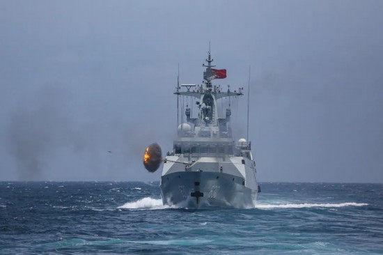 “开始射击!”随着口令下达,隆隆炮声响彻海天。