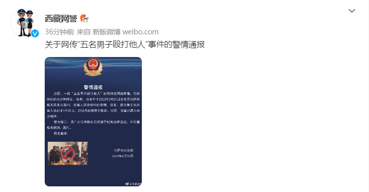 西藏自治区公安厅网安总队”西藏网警“微博截图