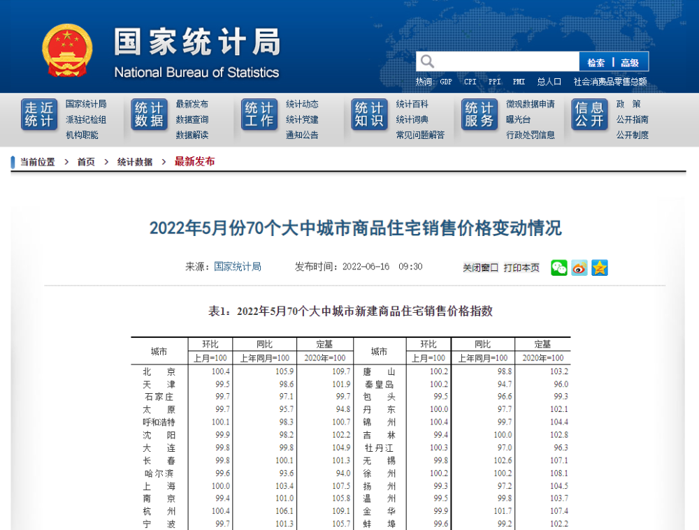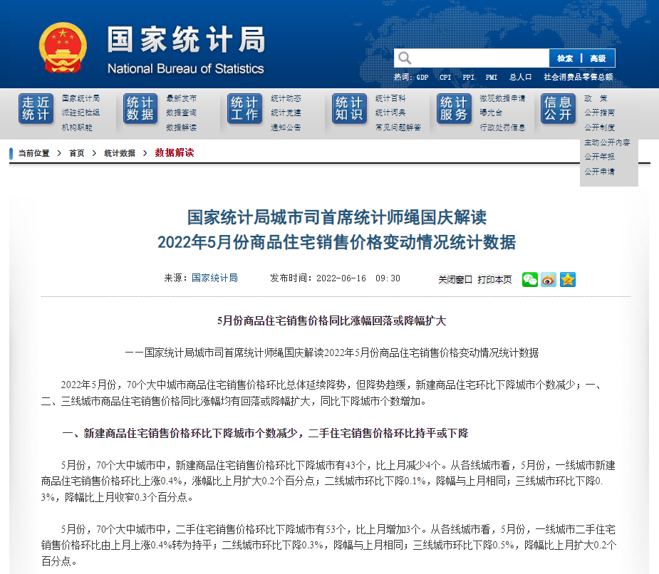 ——国家统计局城市司首席统计师绳国庆解读2022年5月份商品住宅销售价格变动情况统计数据