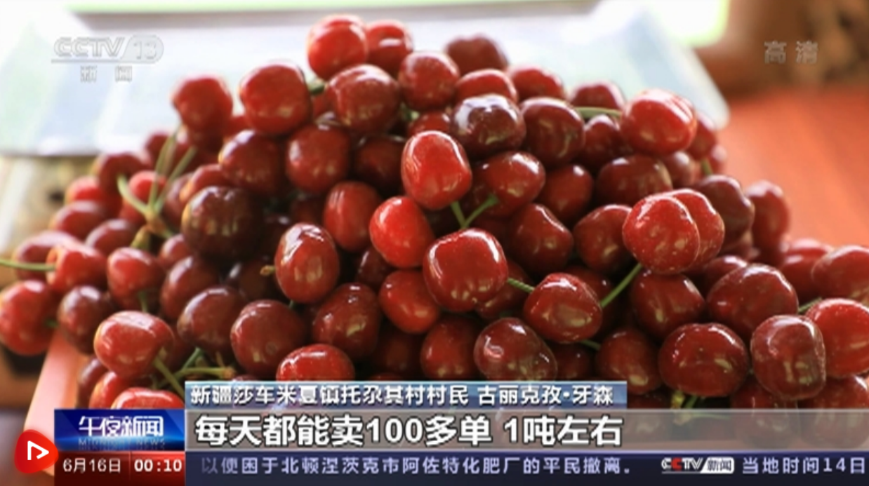 今年,当地的樱桃近50%都是通过线上销售,线上线下齐发力,全镇一天樱桃销售量最高时达到220吨。目前,莎车县樱桃种植面积达到5万亩,樱桃产业已成为当地村民的增收“致富果”。