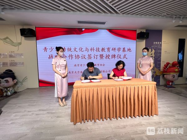 活动上,南京青少年科技教育协会与夫子庙景区签订了合作协议,并为夫子庙景区授牌南京青少年传统文化与科技教育研学基地。