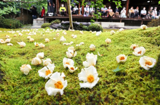 人民网东京6月16日电 据《朝日新闻》报道,在梅雨季节的早晨开放,到傍晚时凋零的夏椿(或叫娑罗树)花迎来了开放的季节。从6月15日开始,位于京都市右京区的妙心寺的塔头(附属于大寺院的子院)东林院举办了“娑罗花鉴赏会”。