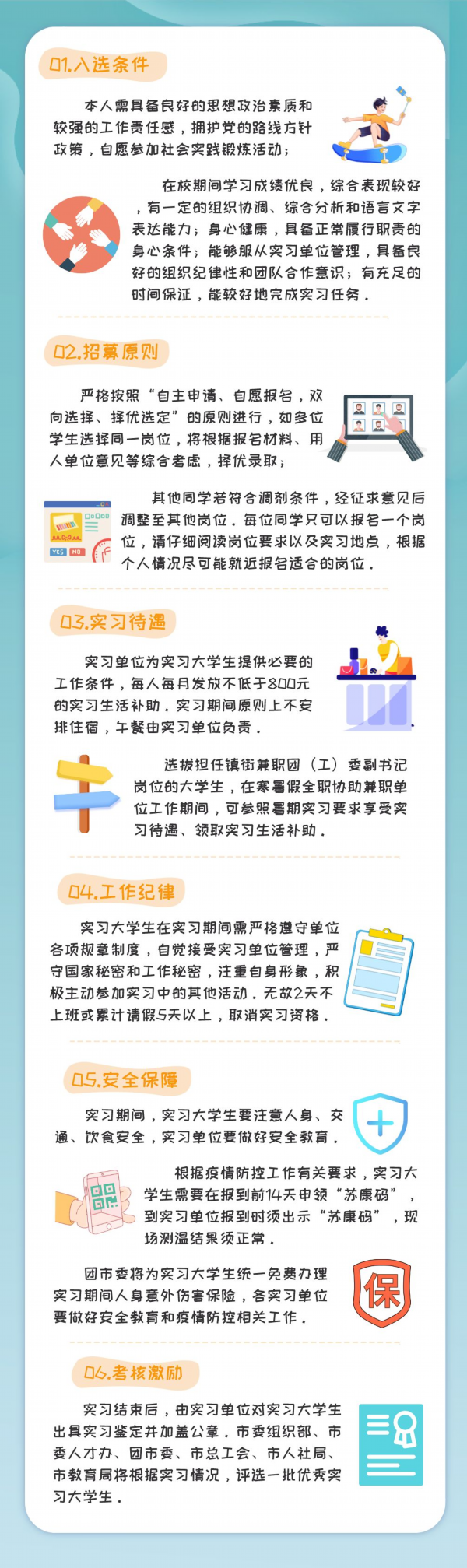 即日起至2022年6月26日,有意参加淮安市暑期实习的在校大学生可结合岗位要求选择实习岗位。