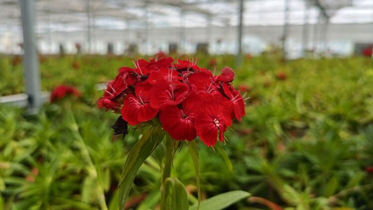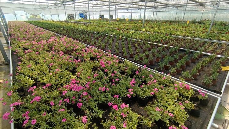 据介绍,花卉大棚里一共种植了10余种盆栽,其中康乃馨、月季的数量最多,总量达到一万余株。