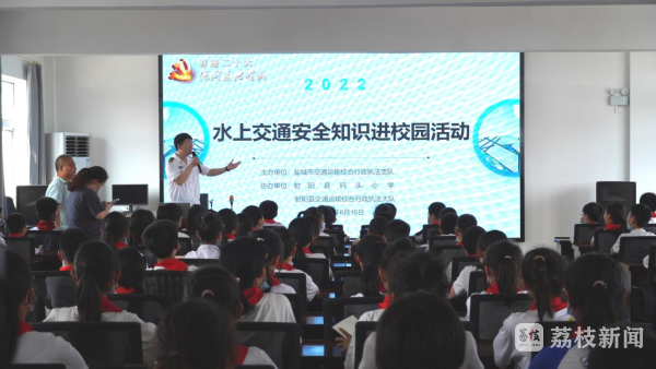 汛期来临,暑假将至,为进一步普及水上交通安全知识,增强学生水上交通安全意识和安全防范能力,保障广大学生水路交通安全出行。近日,盐城市交通运输综合行政执法支队联合射阳县交通运输综合行政执法大队来到射阳县码头小学,为这里的师生上了一堂别开生面的水上交通安全知识课,为学生送上了一份最珍贵的“暑期大礼包”。