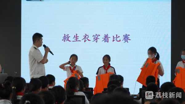 在现场教学环节,执法人员手把手教学生们穿戴救生衣,并组织救生衣穿着趣味比赛。活动中的安全知识有奖竞答环节将本次活动推上高潮,一个个问题激发了同学们的浓厚兴趣,大家纷纷举手抢答,赢得了精美的奖品。“我会把水上交通安全知识分享给小伙伴们,让他们知道水上交通安全的重要性,在平常生活中保护好自己。”五年级学生吕思颐颇有感触地说道。