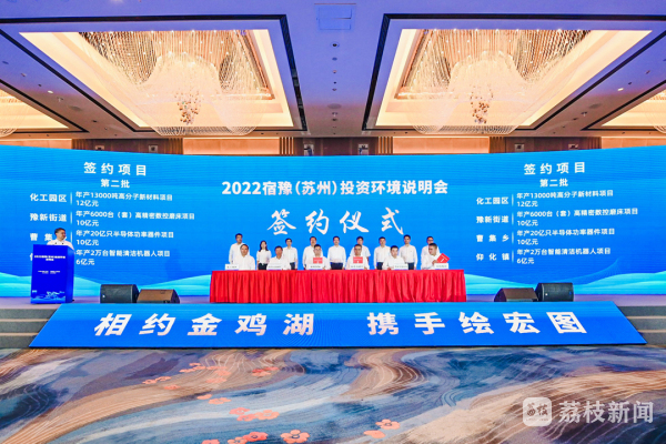6月16日下午,2022宿豫(苏州)投资环境说明会在苏州成功举办,各地客商纷至沓来,共谋发展合作,现场签约项目12个,协议总投资102.5亿元。区领导殷其国、孟凯、唐善林等出席活动。