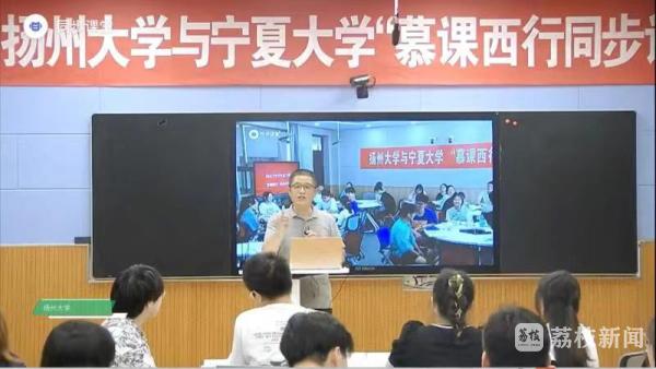 前天(6月16日),扬州大学商学院MBA中心的一间智慧教室里,一堂特殊的在线课程正在进行。该校工商管理专业1901班学生正和远在2000多公里外的宁夏大学物流管理2001班学生共上一堂同步直播课程。