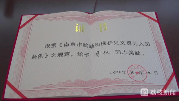 6月17日上午,南京市见义勇为基金会为19名见义勇为人员颁发证书和奖励。获得市见义勇为表彰奖励的周权是一名普通的网约车司机。3月27日深夜,他焦急地跑进四所村派出所接警大厅,让民警帮忙救一名女乘客。