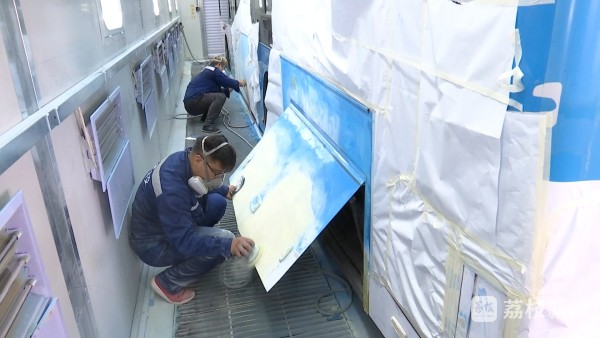 南京公交集团保修分公司一车间漆工马天鑫告诉记者:“用腻子把坏的地方给它刮平整。刮的时候一定要有耐心,这个里面要保证35℃以上,等腻子干了之后才能进行下一道工序。”