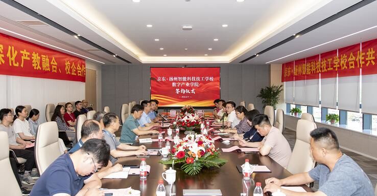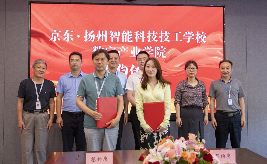 2022年6月17日下午16:00,京东与扬州智能科技技工学校共建数字产业学院合作签约仪式顺利举行,这是京东作为龙头企业之一参加江苏省人社厅6月15日举行的“百校千企万岗”技校助企送工专项活动暨技工院校产教融合工作会议后,在我省签署的首家产教融合、校企合作项目。