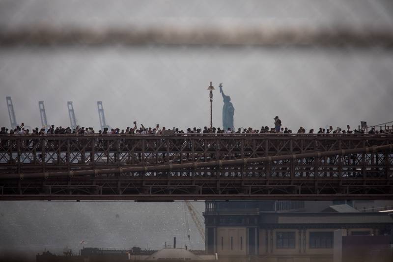↑2020年6月19日,游行队伍经过美国纽约布鲁克林大桥。