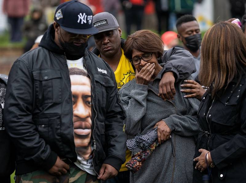 ↑2022年5月25日,在美国明尼苏达州明尼阿波利斯市,弗洛伊德的家人参加哀悼活动,纪念弗洛伊德遇害两周年。