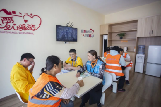 在“繁星花”爱心驿站内,驿站管理员“繁星花”共产党员服务队员正在向环卫工人、外卖小哥、快递员、交警等户外劳动者讲解驿站的功能设施和使用区域情况。51岁的环卫工人刘阿姨激动地说:“今天一大早,我们工作群里就像炸开了锅,供电公司筹建的爱心驿站正式对外开放,叫我们去录指纹,方便以后进出,这里是真有家的感觉,渴了有水喝、雨天能避雨,雨伞、雨衣也可以免费取用,还能吃口热饭,真好!”