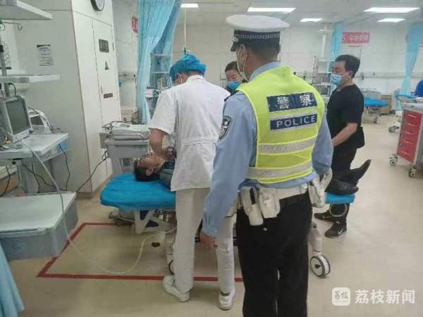 上午10时许,一辆出租车停在了徐州市第二中学门口,鼓楼交警大队四中队护考民警上前询问情况时,听到学校内求助“是我们叫的出租车,我们学校有一名送考老师晕倒了,正要乘坐出租车去医院。”民警看到几人搀扶着一位满头是汗的中年男子从学校内走了出来,该男子意识模糊,无法自己行走,立即帮忙将这名中年男子扶上出租车,并立即驾驶警车开启警灯警笛在出租车前面带路,喊话过往车辆避让。