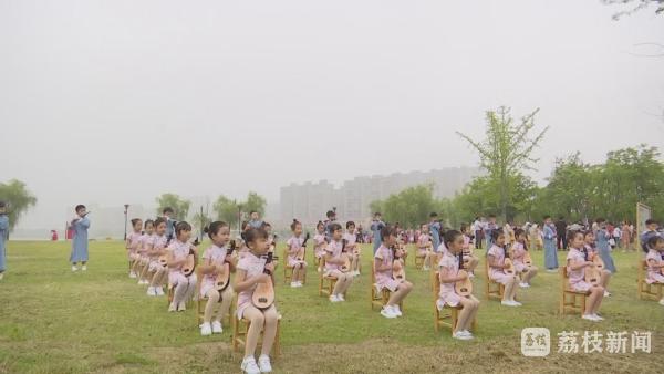 今天上午,在黄桥琴湖东广场,来自该镇中心幼儿园、南街幼儿园、东街幼儿园的小朋友组成一个个方阵,小提琴、吉他、手鼓、电子琴等器乐齐鸣,时而鼓声铿锵激越,时而提琴宛转悠扬,时而京韵醇厚绵长……吹拉弹唱,琴湖畔成了欢乐的海洋。