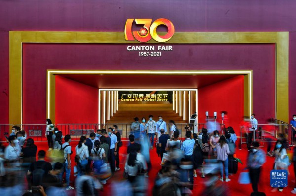 参展人员在第130届广交会现场(2021年10月15日摄)。新华社记者 刘大伟 摄