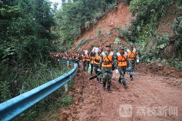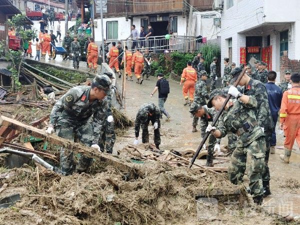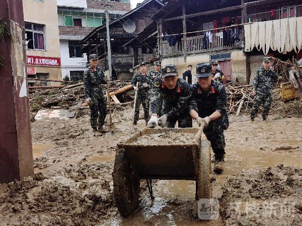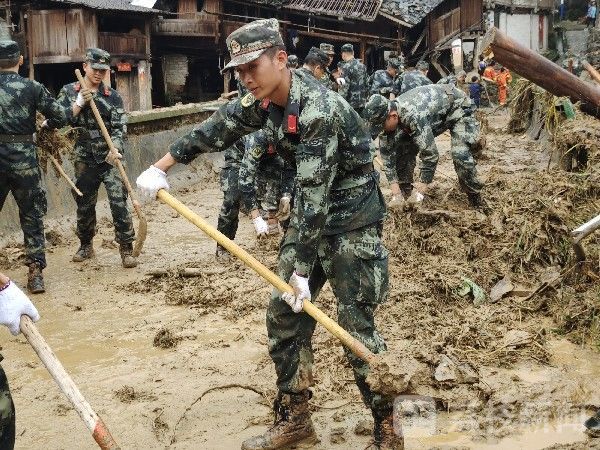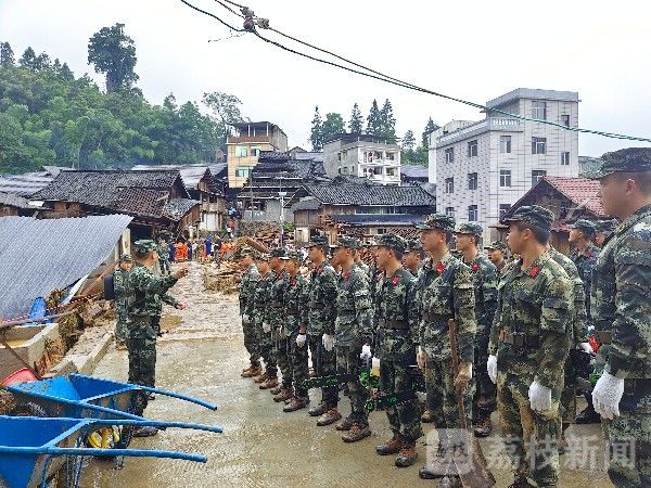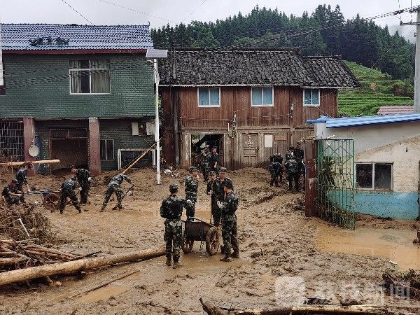 在丙妹镇龙江村,官兵们将救援力量划分为多个小组,冒着房屋随时倒塌的危险,第一时间将25名被困群众及部分受困车辆紧急转移至安全地带。