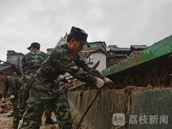 截止6月20日10时00分,官兵们还在灾情一线清理河障、排除险情。