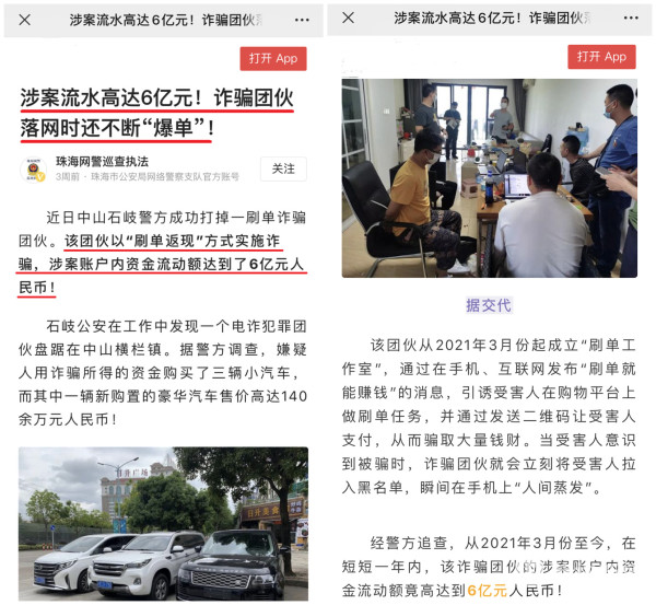 警方提醒:刷单本身就是违法行为,网上一些“兼职信息”,多数都是以高额回报作为诱饵,等到获取小额佣金后,不法分子就会以资金冻结等理由要求大额汇款,进而实施诈骗。网络兼职套路多,大家一定要擦亮眼睛,谨防落入圈套。