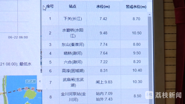 据南京市水务局统计,从5月1日入汛以来,南京的降雨量比常年同期偏少一半,但由于华南、江南多地普降暴雨,长江上游来水持续增大,长江南京段的水位也在缓慢上涨。预计本月25日,长江大通站最高流量达到62000立方米/秒,比常年同期偏多约5成,我市长江下关水位预计在26日左右,可能会迎来一个小幅高潮,预计在8.10米到8.15米左右,但仍然低于警界水位8.70米,受长江水位顶托,秦淮河等河道水位也是比往年偏高0.3到0.5米,但没有出现超警戒现象。