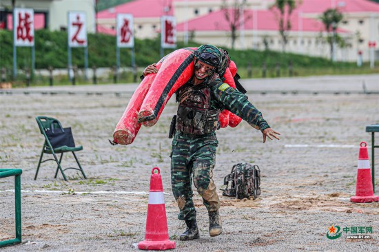 参赛队员正在进行救护专业比武竞赛。梅应炜 摄