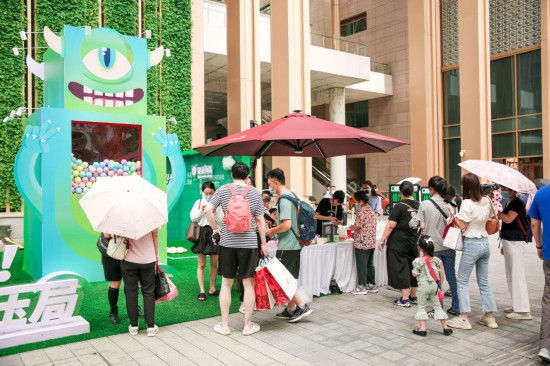 6月16日,位于浙江杭州的银泰百货门前,消费者在商场促销活动中排队体验。(新华社记者 张璇 摄)