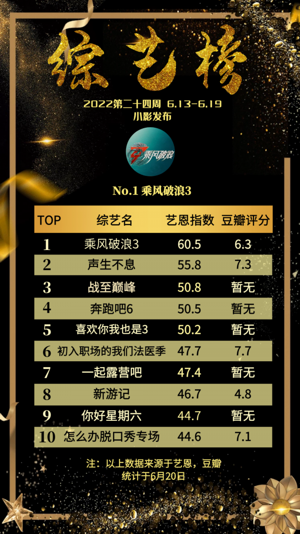 上周,《乘风破浪3》迎来二公舞台,在接下来的7月盛夏,“乘风破浪”几乎毫无悬念将持续锁定周播榜单首席,遥遥领先。