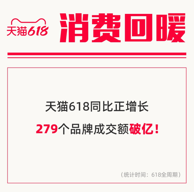 从天猫618持续稳定正增长可以看出,消费需求逐步释放,消费活力进一步激发,商家经营回暖,市场主体运行渐稳。