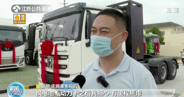 张明说:“换电池动力之后我担心有里程焦虑,充电时间比较长,要七八个小时充一次电,这个换电的速度就比较快了,五分钟就可以把这个电换好。”