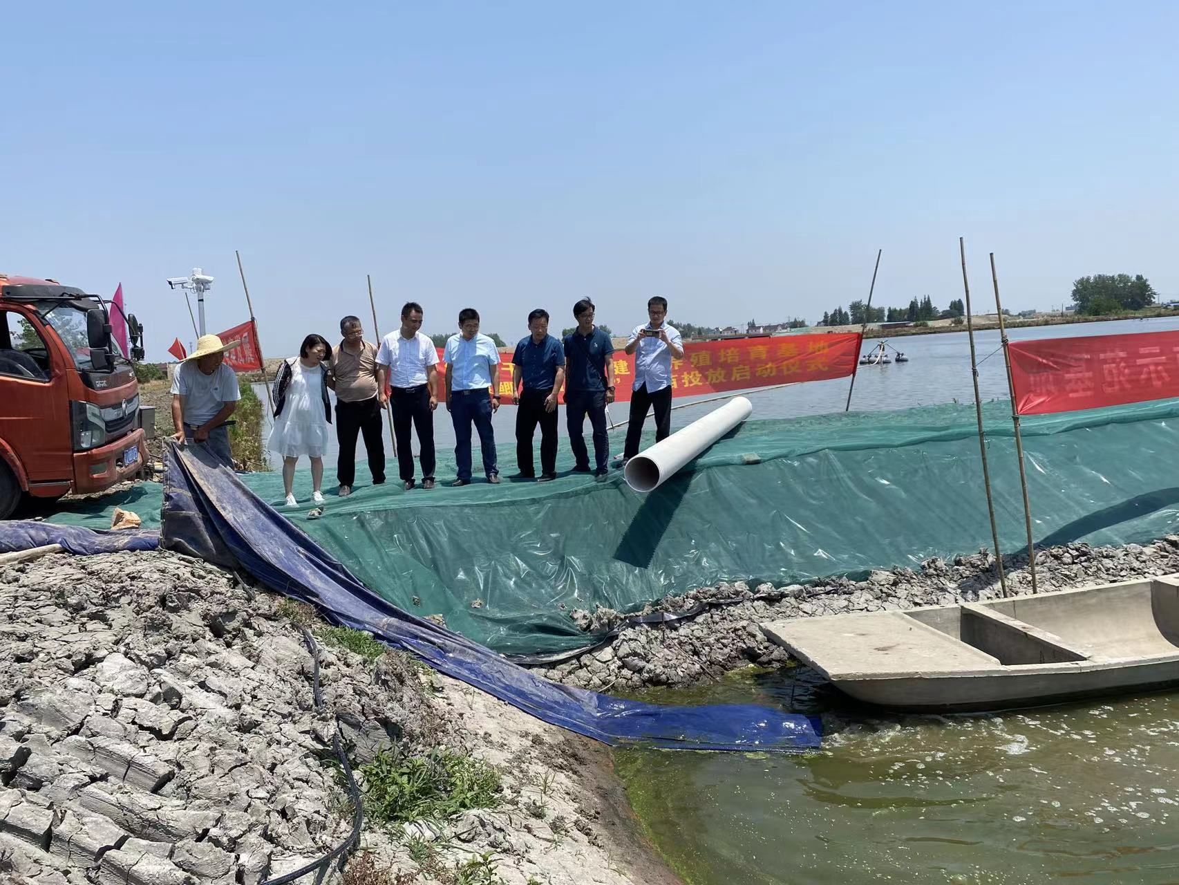 6月17日上午,全国农业科技现代化先行县,兴化市特色淡水鱼产业配套技术集成与推广项目—异育银鲫“中科5号”生态养殖示范基地落户千垛镇三湖农场。南京农业大学副教授、博士王 玮、杨 平,以及兴化市农业农村局、现代农业发展服务中心领导专家和千垛镇领导干部到场为兴化市千垛生态健康养殖培育基地揭幕,并在基地举行了异育银鲫“中科5号”鱼苗投放启动仪式。
