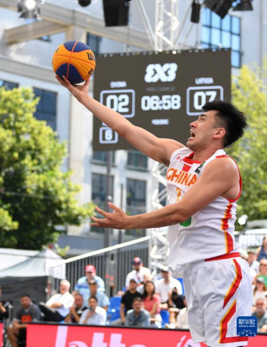 6月22日,中国队球员郭瀚宇在比赛中上篮。新华社记者 任鹏飞 摄