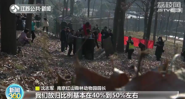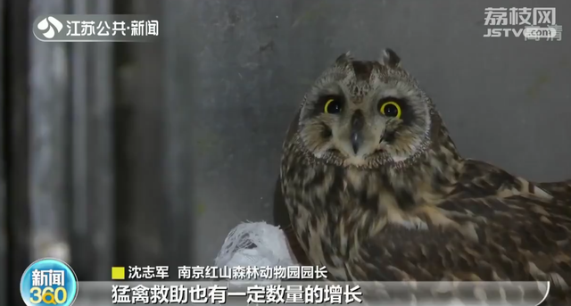 南京红山森林动物园园长沈志军告诉记者:“这几年本土动物越来越多,像猫头鹰、八哥, 猛禽救助也有一定数量增长,像小型兽类、貉、猪獾狗獾,通过积极医疗、救治康复,通过科学的评估之后放归。我们放归比例在40%到50%左右,很多动物原产地来自非洲、南美洲、东南亚,非法贸易来到我们中国,被海关罚没送到我们这边来,我们相当于给它们一辈子养老。”