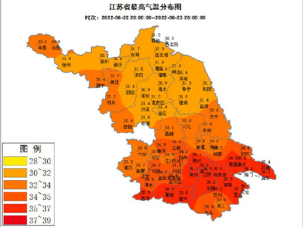 好消息是,降水和大风也带来了久违的降温,淮河以北多地 " 退烧 " 明显,预计 24 日沿江和苏南地区最高温在 30 ℃左右,体感会舒适不少。不过,随着降水停歇,24 日江苏北部高温返场,部分地区仍有 35 ℃以上高温。而随着大范围的降水停止,25日整个江苏的温度又将重返35℃左右。