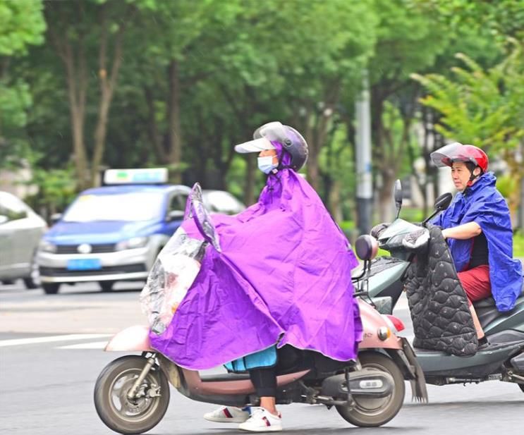 无锡市6月23日入梅,当天早晨,市民在海岸城附近一处路口冒着细雨出行。(还月亮 摄)