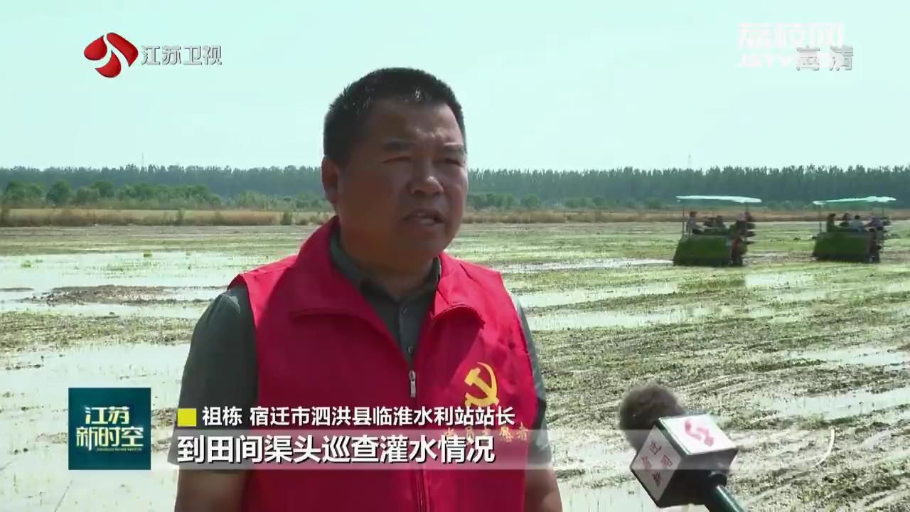 宿迁市泗洪县临淮水利站站长祖栋说:“合理安排50余名管水员到田间渠头巡查灌水情况,科学分配不浪费水,确保秧苗栽插圆满完成任务。”
