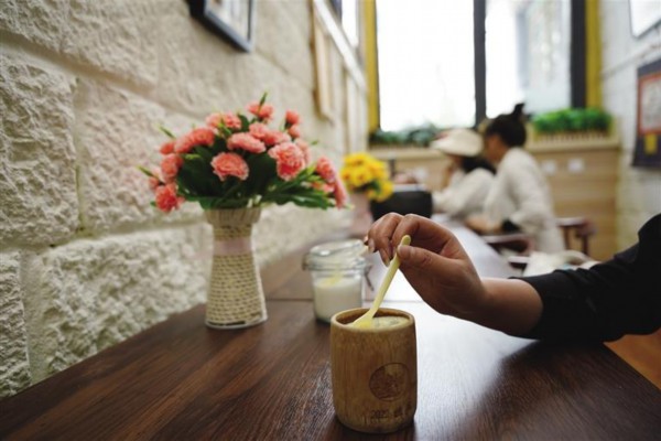很多年轻人会说,冰激凌与夏天绝配,殊不知,酸奶也是西藏夏天的绝配。在八廓街的巴扎酸奶坊,来一杯香气浓郁、酸甜平衡的冰镇竹筒酸奶,清凉提神,回味无穷。吃完酸奶,已是正午时分,沿着宇拓路来到布达拉宫广场,走近湖边,水鸟正悠闲地追赶鱼群,看着鸟儿灵巧自在的身影,坐在湖边台阶上纳凉的市民游客也不禁露出了会心的微笑。