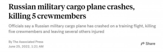 据美国广播公司6月25日报道,当地时间6月24日早上,一架军用运输机在俄罗斯城市梁赞附近加油后坠毁。通过搜救行动后发现,如今已有5名机组人员死亡,另有几人受伤。