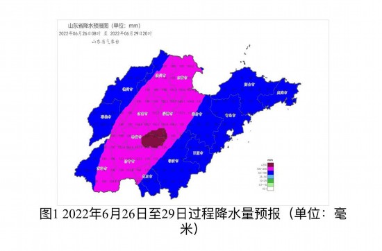 6月25日,记者从山东省气象台了解到,受副高边缘暖湿气流和冷空气共同影响,26—29日山东省迎来今年首次大范围暴雨过程,并伴有大风和明显雷电。26日中午至27日白天,强降雨主要在中西部地区,菏泽、济宁、枣庄、临沂、济南、泰安、淄博、潍坊和东营有暴雨,部分地区大暴雨,其他地区有中到大雨局部暴雨;27日夜间至29日,强降雨区东移,半岛地区有大到暴雨,其他地区有小到中雨局部大雨或暴雨。全省过程平均降水量70~110毫米,最大小时降水量50~90毫米。其中,菏泽、济宁、枣庄、临沂、济南、泰安、淄博、潍坊和东营降水量70~130毫米局部200毫米以上,其他地区40~60毫米局部100毫米以上。