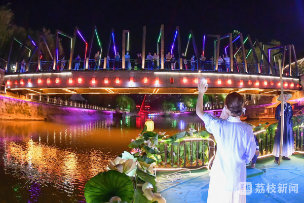 随着各类促消费举措的推进,连云港市“夜经济”快速复苏,民主路老街、陇海步行街、盐河古巷多个商业街区晚间人流如织。千年盐河古巷,水调清歌回荡。坐在古色古香的游船上,底下是泛起涟漪的河水,眼前是别样的海州夜景。