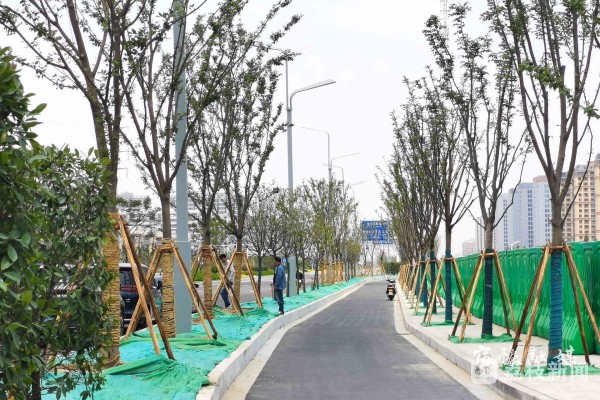 目前西楚大道中央隔离带、侧分带绿化栽植完成,正在进行西侧园路、广场和球场施工,预计今年10月底完工。