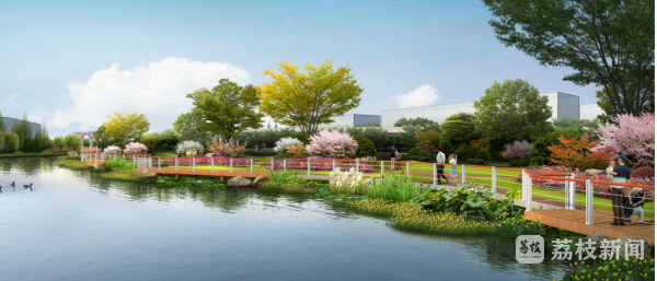 项目景观布局以郊野生态段、滨水阳台段和生活宜居段三段功能区。“滨水阳台”增设临水平台满足人们亲水需求。“生活宜居”段沿河打造趣味休憩空间,形象可爱的娃娃雕塑象征梦想与未来。“郊野生态”段以绿化为主,打造生态郊野的滨河风貌,同时为远期发展预留空间。该工程目前正在进行“歌剧魅影”节点施工,预计12月底完工。
