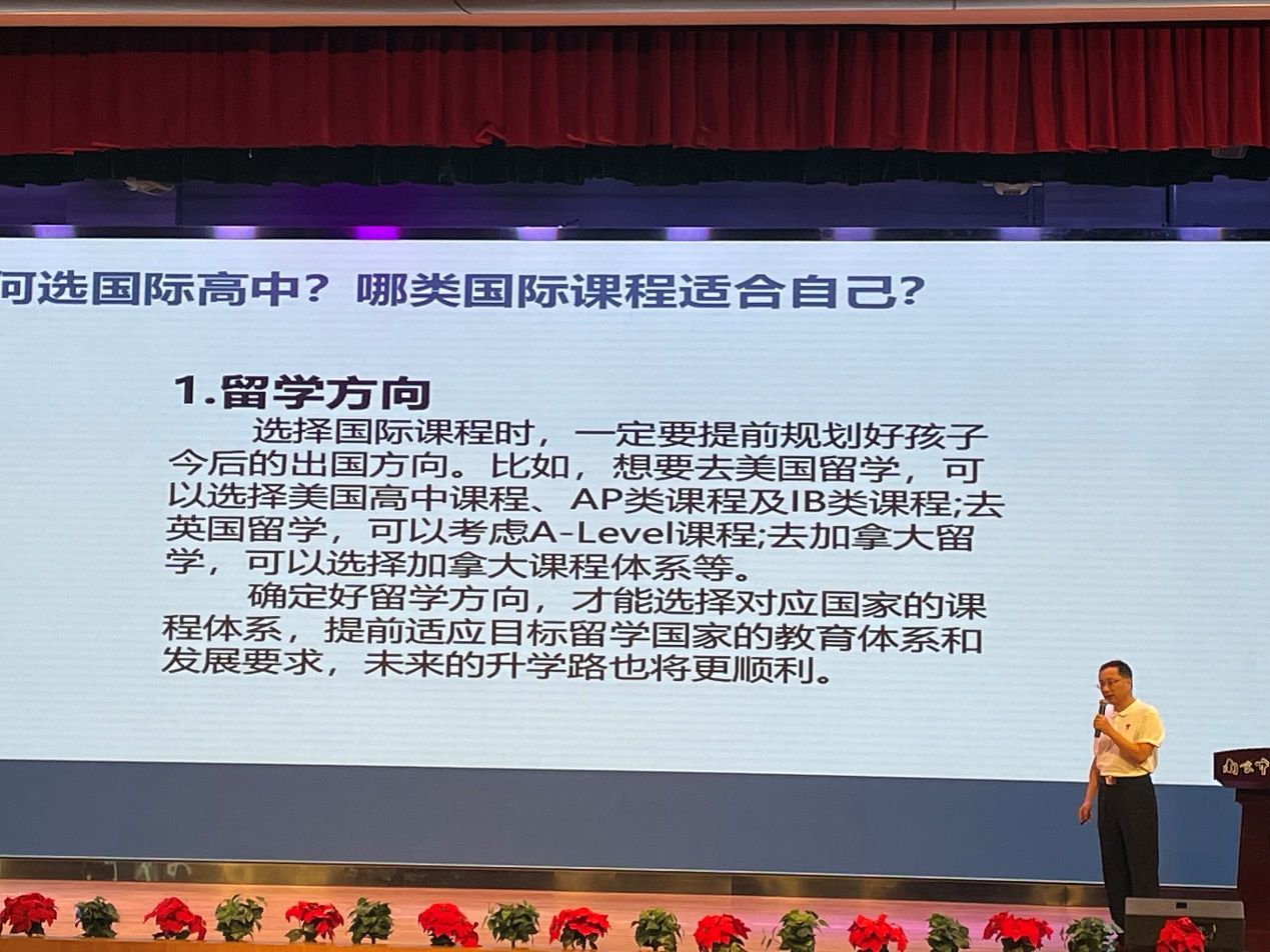十三中国际部顾问伏新详细介绍了十三中中加班和中美班的办学优势。作为江苏最早正式注册的国际学校,十三中开设有“加拿大安省高中OSSD课程”和“美国高中AP课程”,学生在学习中方课程的同时,还要学习加拿大或美国本土高中课程,等于拥有中外“双文凭”。凭借“双文凭”,学生可直接申请多个国家的大学,享有冲击世界顶尖学府的绝对优势。