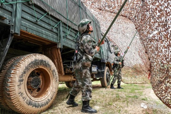 ▲在野外驻训的该旅女兵运输班和卫生救护班。