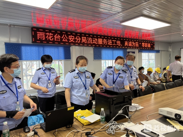 连日来,雨花台公安分政务服务管理大队、赛虹桥派出所来到辖区多个工地,为云南、江西、四川等地的来宁务工人员办理身份证、居住证。办证现场民警为务工人员核对信息、拍照、录入指纹,5分钟左右就能办理好。