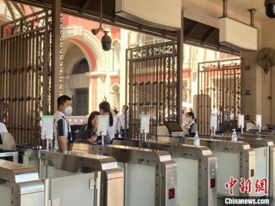 △6月10日,旅客在铁路上海站依次有序验票进站。